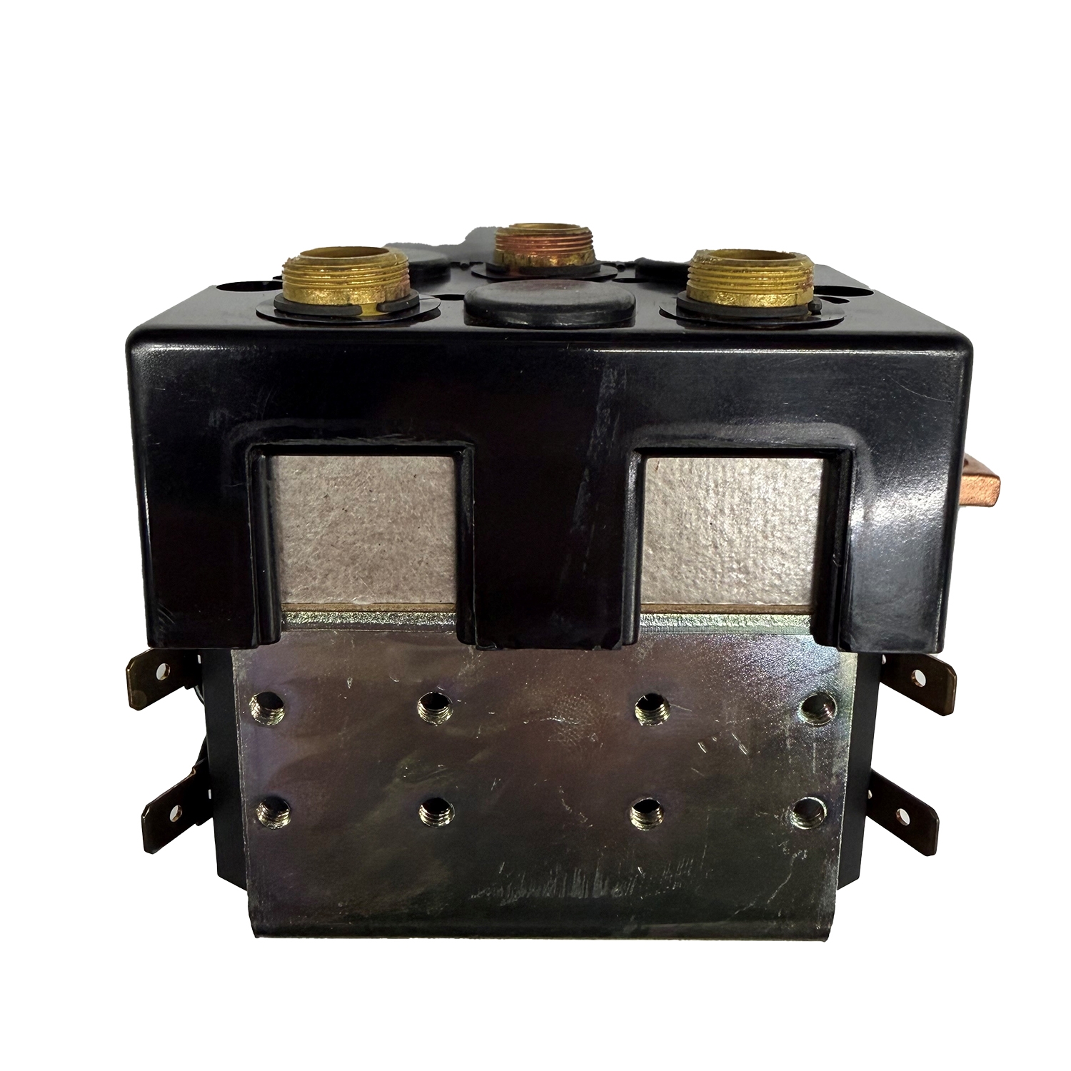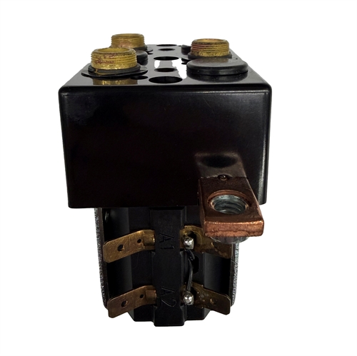 2,2 & 3 Kw troster. Støvtæt DC Relæ Dobbel Skifte f/reversering u/beslag. Top cover reversed. T kontakt mod beslag, bar kontakt på højreside.